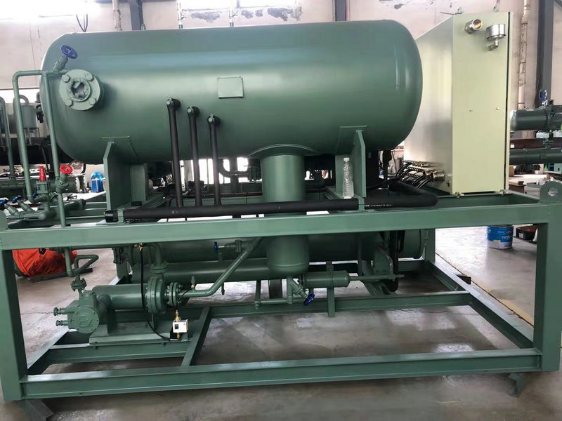 通過制冷劑泵(屏蔽泵)的升壓,把低壓循環桶中的制冷劑供給客戶蒸發器(冷量需求端);從蒸發器中出來的氣液混合物重新回到低壓循環桶進行氣液分離后,純制冷劑氣體回到壓縮機。